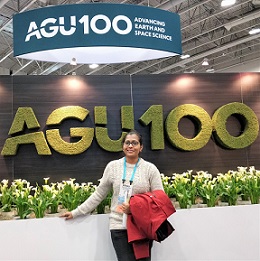 AGU Fall Meeting, 2018 Washington, DC, USA, December 10-14, 2018 "I was selected to present my work at the American Geophysical Union (AGU) Fall Meeting, held at Washington, D.C., USA from 10-14 December 2018 for which I received partial financial support under the scheme of Good International Conferences/Workshops/ Symposia from DORA, IIT Roorkee. This fund helped me cover my registration fees, visa fee and accommodation charges. My work was appreciated among my peers and I got some valuable suggestions from experts in the field which would be beneficial for my research. I am extremely thankful to DORA, IIT Roorkee for the wonderful opportunity."
