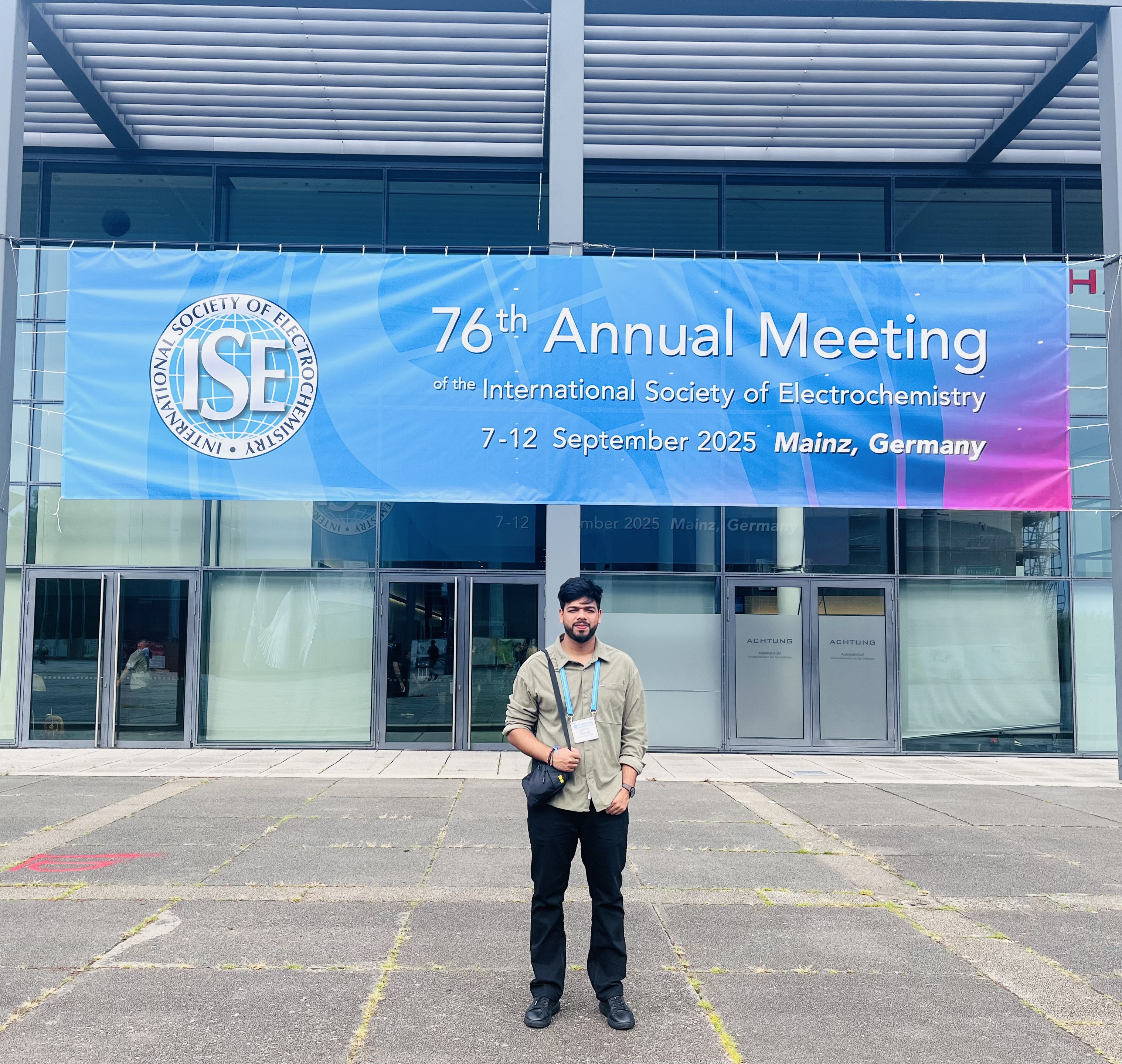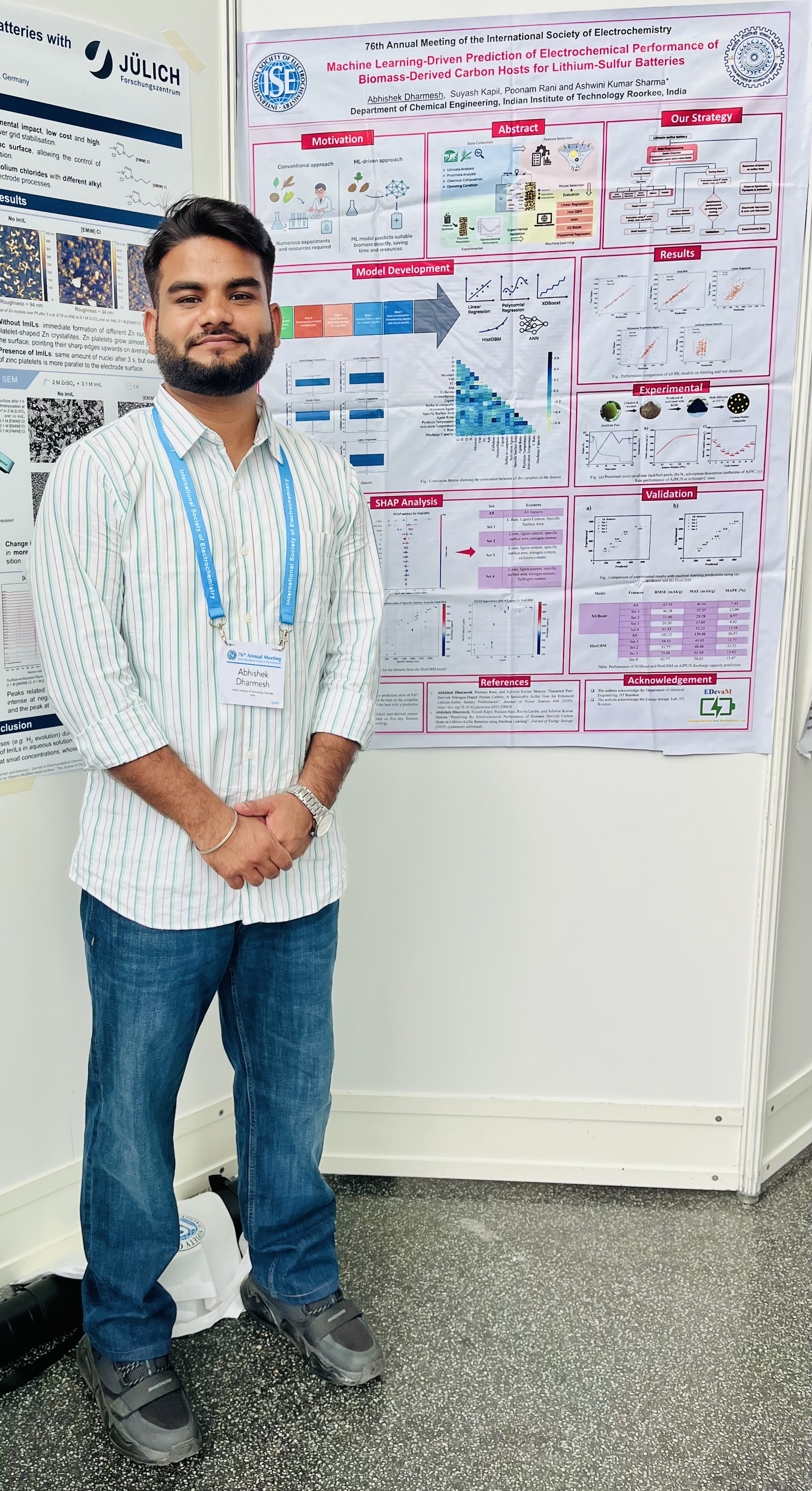 I would like to express my sincere gratitude for the travel support of ₹75,000 provided by IIT Roorkee through the DORA Office. This generous support enabled me to attend and present my research work titled “Machine Learning-Driven Prediction of Electrochemical Performance of Biomass-Derived Carbon Hosts for Lithium-Sulfur Batteries” at the 76th Annual Meeting of the International Society of Electrochemistry (ISE) held in Mainz, Germany, from 7th to 12th September 2025.