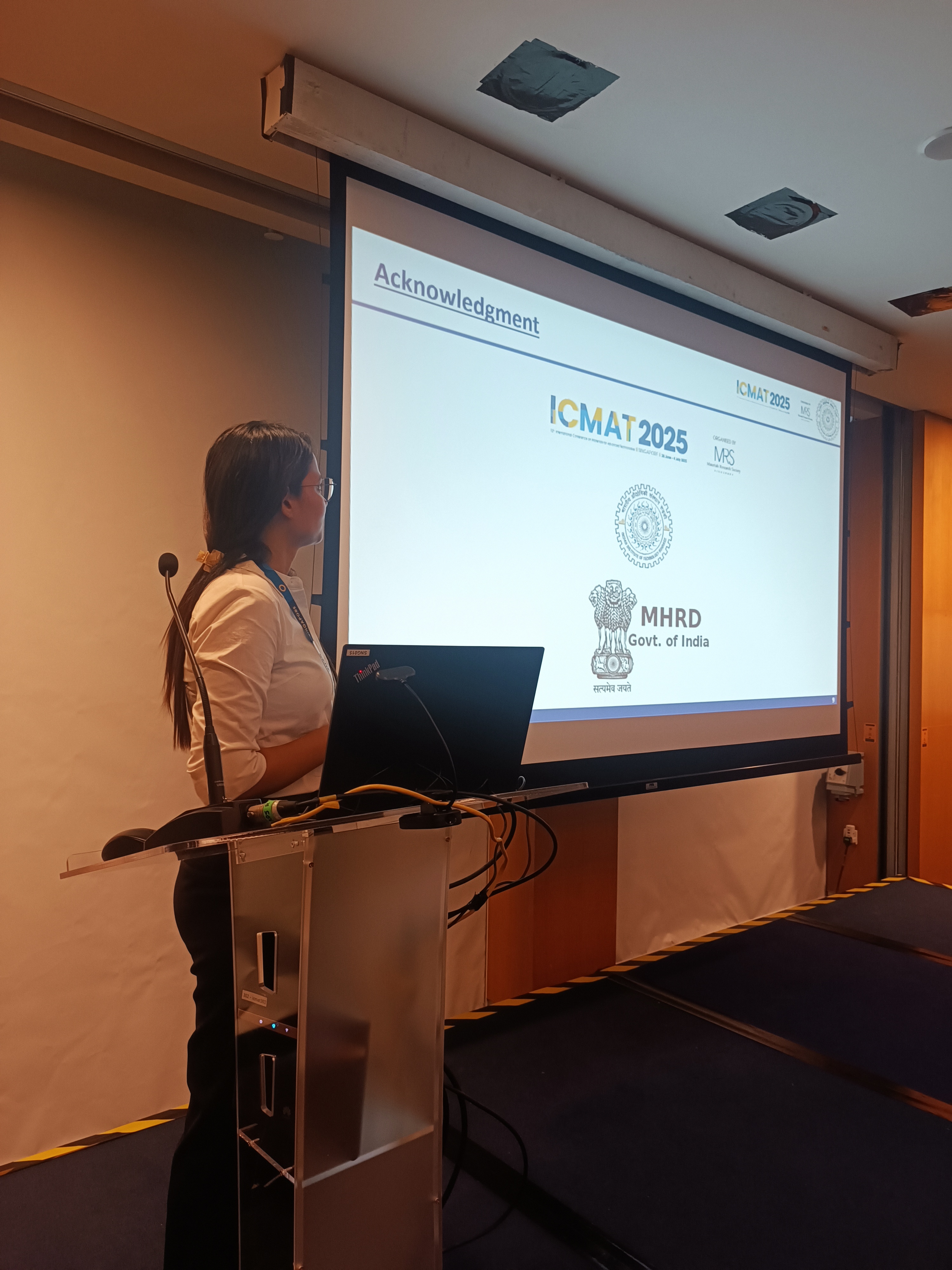I would like to sincerely thank you for providing me with the financial support to attend and present my research at the 12th International Conference on Materials for Advanced Technologies (ICMAT 2025), held from June 30 to July 4, 2025, in Singapore.